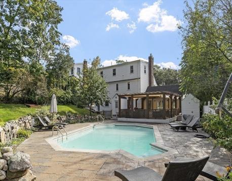 Welcome to 12 Powder House Road Ext, nestled in Medford’s highly sought-after Lawrence Estates neighborhood on a quiet dead-end street. This stunning Colonial offers over 3,000 sq. ft. of living space with 4 bedrooms and 4.5 bathrooms. Beautiful hardwood floors flow throughout, complementing a well-designed layout that offers a comfortable, natural flow between rooms. A two-sided gas fireplace connects the living and family rooms, creating a warm and inviting atmosphere. Two ensuite bathrooms provide modern comfort and style.The finished basement offers flexible space with potential for an in-law suite or home office. Enjoy outdoor living at its best with a large fenced yard, in-ground pool, updated deck, garden area, and irrigation system. Additional features include solar panels for energy efficiency and an attached garage for convenience. A rare combination of space, updates, and location—just minutes to Medford Square, Route 93, and Boston!