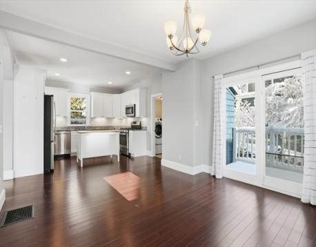 Beautifully renovated single-family home in desirable West Medford with off-street parking for two vehicles. Conveniently located near public transportation and West Medford Square. This spacious home offers 4 bedrooms and 3.5 bathrooms, along with recent improvements including a multi-zone heating system, central air conditioning, and a newer roof. The sun-filled first floor features an open-concept layout ideal for entertaining. Sliding glass doors off the dining area provide access to the backyard. The updated kitchen includes granite countertops, stainless steel appliances, ample cabinetry, and a half bath with laundry. The second floor offers a primary suite, two additional bedrooms, and a full bathroom. The finished third floor provides flexible living space, featuring a large bedroom, reading nook, and private bathroom—ideal for guests, home office, or extended family.
