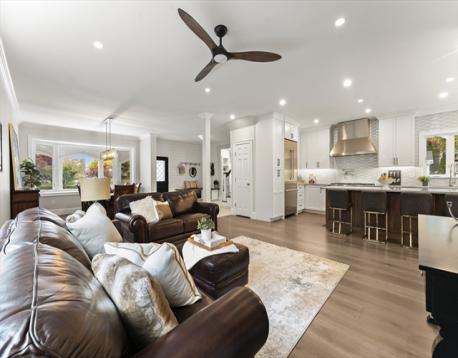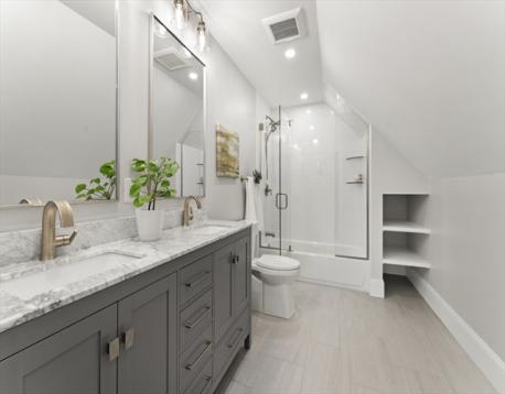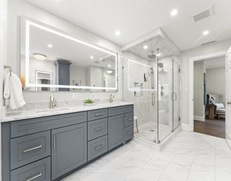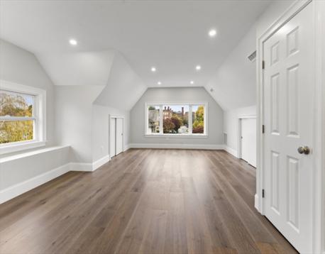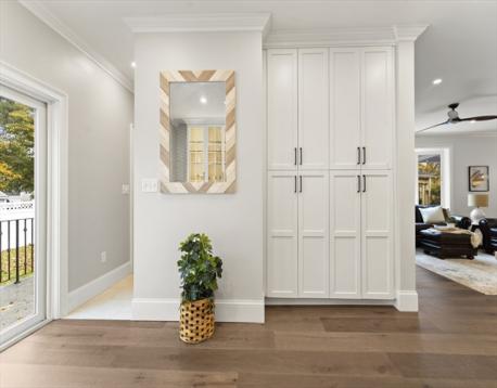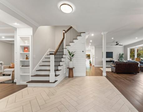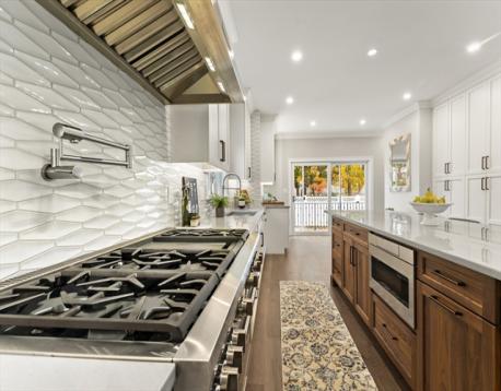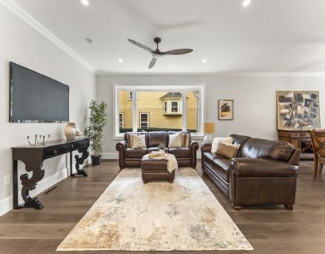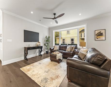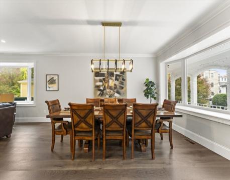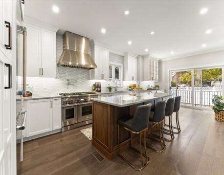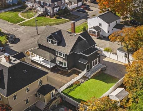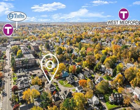 Completely gut-renovated and masterfully redesigned, this stunning Colonial Revival in highly sought-after West Medford blends sophisticated elegance with modern luxury. Three levels of spacious living featuring a shiplap mudroom entry, two spacious family rooms, four bedrooms, wood burning fire stove and electric heated bathroom floors. The 26' chef’s kitchen showcases Professional Thermador appliances, a Quartzite-and-Walnut island, Japanese ceramic tile backsplash, beverage bar, and pantry—opening to a private turfed yard. A 22' beamed family room with leaded-glass built-ins and double atrium doors leads to a 40’ wrap around porch. Wide-plank engineered hardwood floors throughout. The primary suite offers custom closets and a marble-appointed bath with double vanities and makeup desk. Located on a quiet side street steps from Medford Square - a commuters dream - with a Walk Score of 81 and just over a mile to the Green Line.
