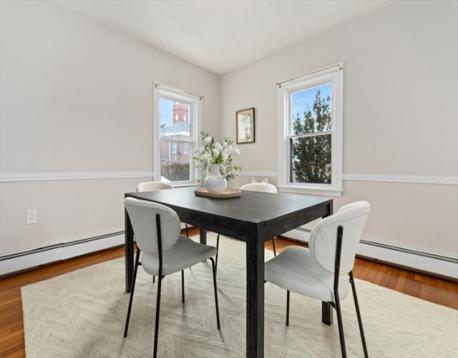 This beautiful, 3-bedroom, 1.5 bath townhouse sits on a 10,770 sq. ft lot & is a stone's throw from everything Medford & Boston have to offer! Experience the restaurants, markets & shops of Medford Square, or easily trek to Boston with the proximity to Route 93 or the local bus routes to multiple MBTA stations (orange/green line, cmtr. rail). You’ll get a “single-family feeling” in this WARM & SUNNY townhouse w/ BEAMED kitchen ceilings, an elegant dining room, a DEDICATED OFFICE, 1-car garage & energy-efficient solar power to help keep energy bills low. South-facing main living area invites the sun into your kitchen, dining & living room throughout the day. Great location next to Roberts School, down the road from Hickey Park & Gillis Field, close to hiking paths along the Fells, markets, eateries, & the popular Chevalier Theater. Catch a show without parking! This is a commuter's dream that is just minutes from the heart of Medford that truly feels like single-family living!