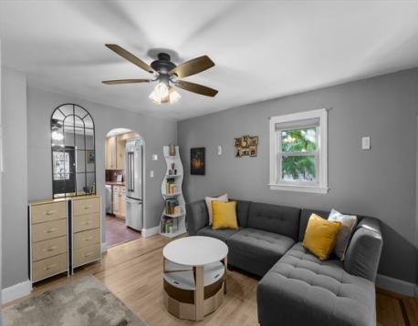 This bright and welcoming single-family offers 2 bedrooms plus a dedicated office—perfect for today’s lifestyle. The sun-drenched living room has gleaming hardwood floors, while the updated kitchen features stainless steel appliances and a convenient mudroom/pantry space. The spacious primary bedroom showcases a custom sliding barn door and a professionally outfitted closet system. Step outside to a beautifully landscaped, fenced-in backyard with a stone patio—ideal for relaxing or hosting friends. Recent upgrades include newer central air & heat, fresh interior paint, new blinds and ceiling fans, and a repointed chimney. With quick access to the Fells Reservation, I-93, and downtown Boston, this is a rare blend of comfort, character, and convenience.