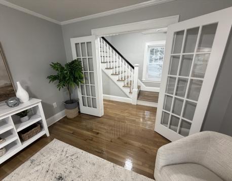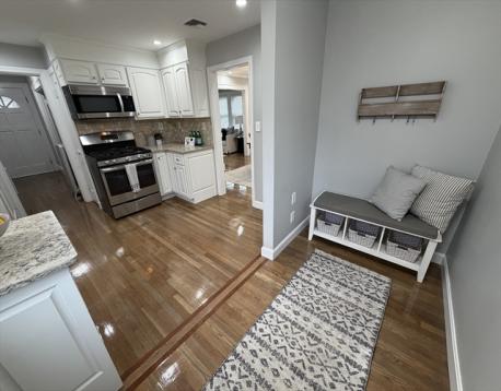 Outstanding renovation including a brand new roof, brand new gas heating system, GLEAMING hardwood floors throughout, fresh paint INSIDE & OUTSIDE - so you can literally just move in and don't have to do a thing. CENTRAL AIR on 2nd floor & mini splits on first floor for AC, installed a couple years ago, enormous primary bedroom with cathedral ceilings, skylight with custom shade & it includes a sitting room large enough to turn into a completely separate bedroom. 3 bathrooms, 200 amps electrical, Super cute mud room, french doors, custom built-ins, stunning stained glass, hardwoods throughout, fenced-in yard & spacious deck. WALK-OUT BASEMENT as well as a completely separate room that could make a great finished room or wine cellar. VERY RARE walk-up attic providing possible expansion opportunities. TONS of extra parking right in front of the house since it is a dead end street with a cul-de-sac parking area right in front. COMMUTERS DREAM, less than 1/2 mile to I-93 & Medford Square