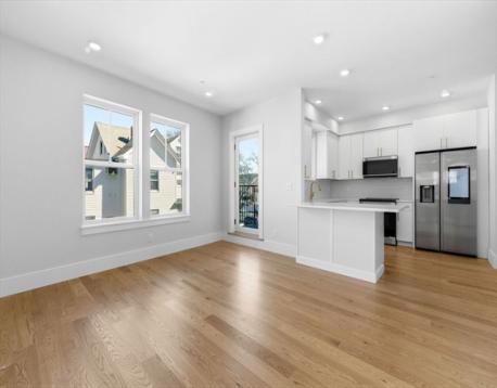 New construction 2-bedroom residence in West Medford, a boutique 9-unit condominium community designed for modern living. This bright corner unit offers two bedrooms and one bath, filled with natural light and featuring a private covered deck and deeded parking. The open-concept kitchen includes a peninsula with seating for three, an induction range, contemporary slab cabinetry, and high ceilings that enhance the spacious feel. A popular ground-level coffee shop adds everyday convenience right outside your door. Ideally located just 0.1 miles from the West Medford MBTA station, providing easy access to transit, local restaurants, shops, and parks, with quick connections into Boston and surrounding communities. Nearby amenities include Tufts University and the Middlesex Fells Reservation, offering over 2,200 acres of scenic hiking trails. Also available are four impressive two-level residences featuring expansive 20-foot private roof decks.