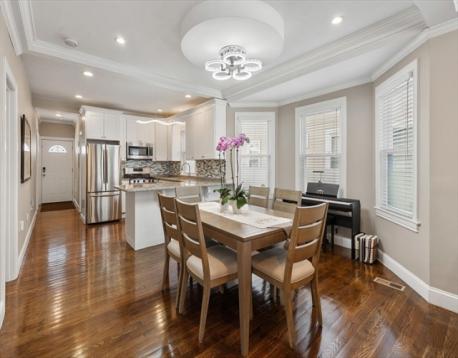 This beautifully maintained 3-bedroom, 3-full-bath condo lives like a single-family home, offering two spacious levels of living with pride of ownership evident in every luxury detail. Gorgeous hardwood floors run throughout the home, enhancing the warm & inviting feel. The main level features an open, comfortable layout ideal for everyday living & entertaining. Sunny, bright kitchen with breakfast bar, stainless steel appliances, & granite counters. A fully finished lower level adds exceptional flexibility, including an extra room perfect for a potential 4th bedroom, home office, or guest space. Enjoy the convenience of a one-car garage, abundant storage throughout, & beautiful newer pavers on the exterior walkways & a spacious patio—perfect for relaxing or entertaining outdoors. Ideally located near the shops & restaurants of Assembly Row, Medford Square, & with easy access to public transportation at Wellington Station, this home blends comfort, style, and unbeatable convenience.
