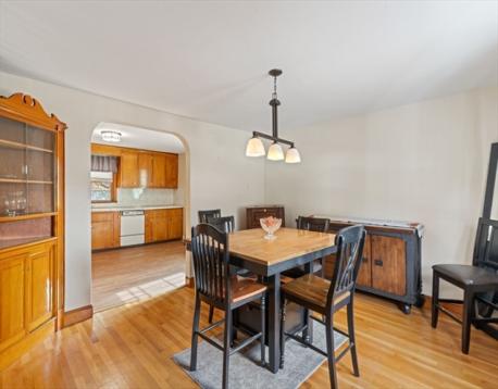 Nestled at 43 Maurice Street, Medford, this 3 bed 1.5 Cape with one car garage under offers an inviting home ready for you. Wood flooring throughout the first floor which boasts kitchen, dining room and living room along with a bedroom and half bath. Two additional bedrooms, hardwood throughout and full bathroom complete the upstairs. Additional square footage in the finished lower level and laundry room with access to garage. Two driveways provide off-street parking. 1404 square feet of living area situated on a 5649 square feet lot, and a one-car garage, and patio and dining area outside for entertaining. This 1958 home offers a blend of charm and practicality. This Medford residence presents a wonderful opportunity to create lasting memories within its walls. Great commuting location, half block from the Middlesex Fells Reservation and a short drive to I-93.