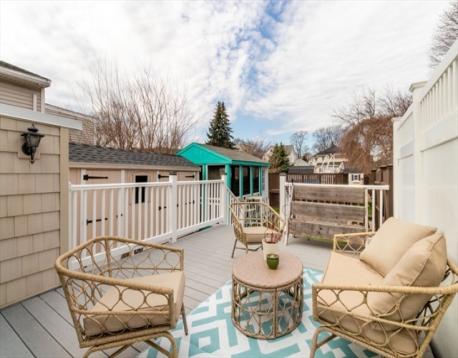 Welcome to this beautifully updated home offering a bright, open floor plan and easy indoor-outdoor living. The chef-inspired kitchen features quartz countertops, Wolf gas cooktop with pot filler, Viking double ovens, Bosch refrigerator, and white soft-close cabinetry. Just off the kitchen is an open living room with a gas fireplace and large picture window. The second floor offers two bedrooms and a full bath. The finished lower level adds flexible space for a family room, office, or gym, plus half bath, laundry and storage. Enjoy a fenced backyard with large deck, screened gazebo, (3) storage sheds and above-ground pool, perfect for relaxing or entertaining. Recent updates include a brand new gas boiler with indirect water heater, HVAC mini splits, newer roof, and 200-amp electrical. Recessed lighting and fresh paint throughout. Off-street driveway parking. Minutes to Route 93, Assembly Row, The Fells, and public transportation to Boston.