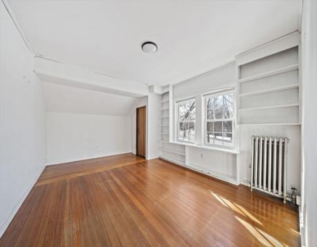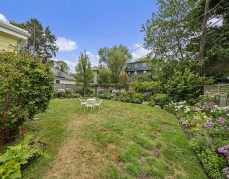 Charm and character fill this center Colonial. The spacious Farmers porch with mahogany decking and center columns is the perfect place to sip your morning coffee while overlooking your neighborhood, the front yard flower beds, and the Mystic River Reservation. Entering the home you are greeted with an open floor plan with a front-to-back living room with gas fireplace and an exquisite home library with coffered ceilings, floor-to-ceiling built-in bookcases, and natural woodwork. The gourmet kitchen has custom cabinetry, a tiled backsplash, stainless steel appliances, and granite countertops. A private first floor office/media room has a mini-split for cooling/heat, and a walk-up attic is ideal for additional storage. The house has central A/C. It is on a side street in the heart of West Medford steps from the Lower Mystic Lake and the Mystic River. The fenced-in back yard, filled with beautiful perennials, offers a peaceful retreat perfect for entertaining.