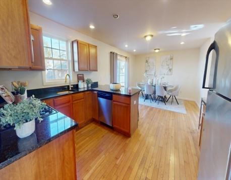 OPEN HOUSE Sunday 12-2pm Jan 18th. ABUNDANCE of Opportunity in large Center Entrance Colonial built in 2011. Sun Splashed, 15 yr young home featuring Cathedral Ceiling Entry, OPEN floor plan, GRANITE and Cherry kitchen with peninsula, Full bathroom on both levels, Second floor laundry room, Hardwood floors throughout, overhead lighting, large closets and neutral decor. AGE IN PLACE- The 4th bedroom on listing is on FIRST FLOOR does not have a closet- but there is an adjacent closet - and its next to full bathroom. High Ceiling in unfinished basement. Gas FHA Heating and Central Air. The layout of this home offers opportunity for accessory dwelling unit sectioning or multi-generational living. ADU questions to Medford building Dept. THIS is definitely the home to invest your elbow grease and decor ideas into! Close to Magoun Park, Jog paths/Bike Route along the Mystic River, schools, restaurants of Medford Sq, and Rte 93 access. VIEW OUR 3D tour and Floor plan