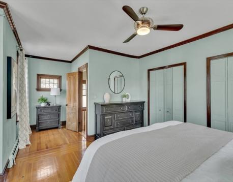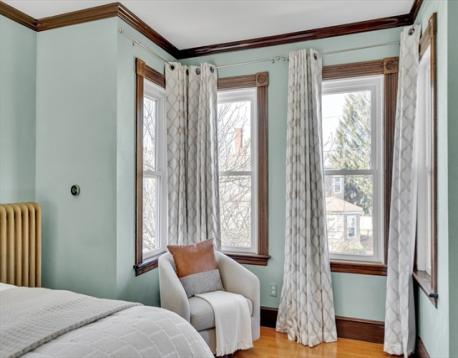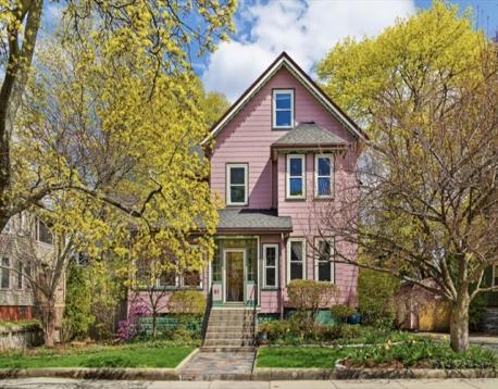 This sunlit Victorian home features 4 beds, 3 baths is located near Medford Sq. This magnificent property blends historic charm w/modern conveniences. Gracious period details include soaring ceilings, intricate wood parquet floors, gumwood w/columns, carved bannisters & ornate pillars. Other stunning features are the many oversized, updated windows. Enter through enclosed porch to a large foyer, on your right is a dramatic living rm, dining rm; straight ahead is an add'l den w/custom shelving, leading to updated sunroom. Ahead is a large eat in chef's kitch w/island, cherry cabinetry & high end appliances; french doors lead from the kitch to a covered patio overlooking beautiful fenced gardens w/sparking, in-ground,heated salt water pool & water feature. The 2nd fl features main bed, spacious bath w/sep tub & showr, bonus office/flex space, 2nd stair & 2 beds, 3rd fl features office & 4th bed. Bsmt w/full bath & flex spaces. Easy comm to Bos via 93 & 2.5 miles to Wellington Orange Line