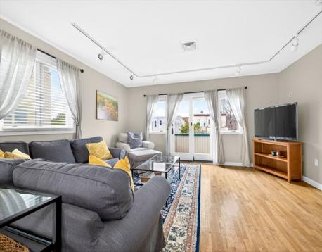 ACCEPTED OFFER. OPEN HOUSES CANCELLED. Welcome to this bright and inviting 2-bedroom, 2-bath condo in a prime Medford location This top-floor corner unit is filled with natural light and features a spacious, well-designed layout with large living and dining areas with hardwood floors. The kitchen offers granite countertops, a peninsula, and a generous pantry for added storage. Enjoy the convenience of in-unit laundry and a beautifully updated common bath. Both bedrooms are well-sized, including a primary with two professionally built out closets. Additional highlights include ample closet space throughout plus front and back decks a 2019 HVAC System and 2 garage spots. Located less than a block from the MBTA Green Line, with easy access to Tufts University, Davis Square, and Downtown Boston.