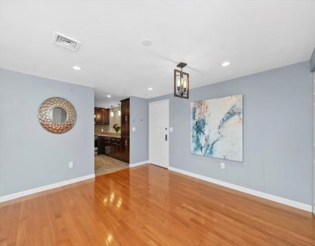 Beautifully reimagined from top to bottom, this 7th floor residence blends modern luxury w/effortless convenience. Enjoy an airy open layout framed by tranquil treetop views. The custom wrap around kitchen impresses w/an abundance of slow close cherry cabinetry, generous pantry storage, granite counters, stainless steel appliances (new fridge 2025), tile backsplash & elegant pendant & under cabinet lighting. Throughout the home, you’ll find gleaming, solid hardwood floors, spa like baths, brand new HVAC (2025) w/Nest thermostat, updated windows & slider (2019), smooth ceilings & recessed lighting in every room. A tiled deck, custom blinds & an in-unit Bosch ventless washer/dryer, basement storage & rarely found TWO GARAGE SPACES plus ONE outdoor spot. Perfectly positioned for commuters & lifestyle seekers alike—just moments from the Wellington Orange Line, Mystic River Reservation & Marina, Station Landing & the energy of Assembly Row. Residents enjoy an outdoor pool, rec room & sauna.