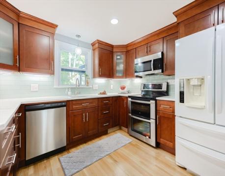Exceptional Colonial in much sought after area! Gleaming hardwood floors abound throughout the spacious sun-filled living room, formal dining room w/sliders leading to two-tier deck overlooking the huge back yard with Gazebo and extra storage sheds offering potential for outdoor enjoyment and landscaping endeavors. Ultra remodeled kitchen w/Quartz Counters and Cherry Cabinets. Cozy family den and full bath complete the 1st floor. The second floor boasts two bedrooms, ultra full bath w/jet tub and separate shower, huge primary bedroom w/vaulted ceiling and walk-up access to loft, great for home office and another room for more private office or additional bedroom. Finished basement great for playroom offers a 3/4 bath, laundry. and access to one car garage from basement and easy access to yard. Updates include newer boiler, and remodeled kitchen. Situated near Wrights Pond, Fells Reservation, Stoneham Rink & Stone Zoo. Easy access to 93!