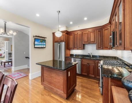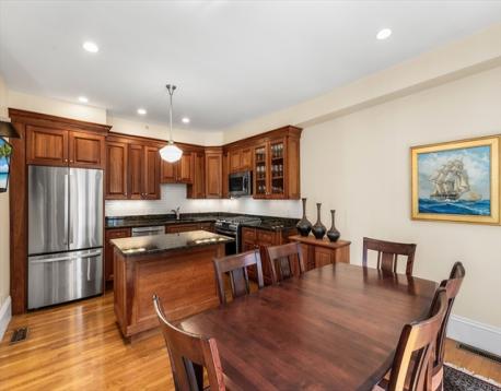Welcome to this stylish 4-level townhouse at Litchfield House, a striking Greek Revival building near Medford Square and steps from the Chevalier Theatre. Thoughtfully renovated, it blends period charm with modern design. The open kitchen features custom cherry cabinets, granite countertops, and newer stainless steel appliances, flowing into a dining area with French doors to a private 21' x 10' porch. The bright living room offers floor-to-ceiling windows and custom plantation shutters. Highlights include a curved staircase, high ceilings, hardwood floors, and a third-floor loft ideal for a home office with a brick accent wall. Additional features: two-car parking, central air, ample storage, new roof, fresh exterior paint, and convenient access to shops, dining, transit, and highways.