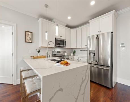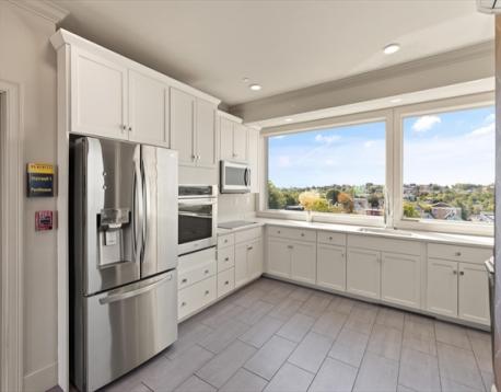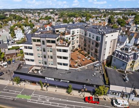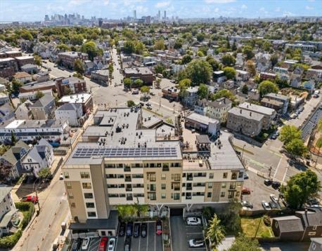 Welcome to 519 on Broadway, perfectly situated on the Medford/Somerville line just steps from the Green Line T. Built in 2020, this modern luxury elevator building offers a stunning 2 bed, 2 bath home featuring a private balcony, in-unit laundry, and 2 garage parking spaces. The chef’s kitchen is outfitted with GE Café stainless steel appliances, white shaker cabinetry, quartz countertops, and a sleek waterfall peninsula. The elegant primary suite features a spacious walk-in closet, sliding glass doors to a Juliet balcony, and a beautifully appointed ensuite bath. Residents enjoy premium amenities including a fitness center, movie theater, billiards room, conference/work space, bike room, and courtyard. A large roof deck with clubhouse, full kitchen, grill, half bath, and party room showcases sweeping Boston skyline views. Includes 2 private storage units. Convenient to Ball Sq., Magoun Sq., and Tufts University.