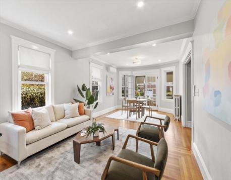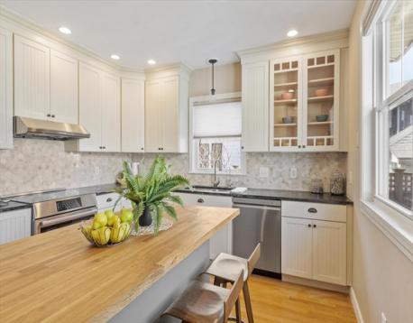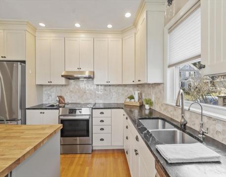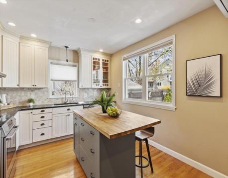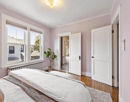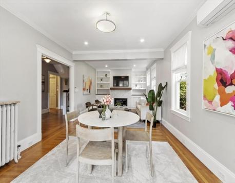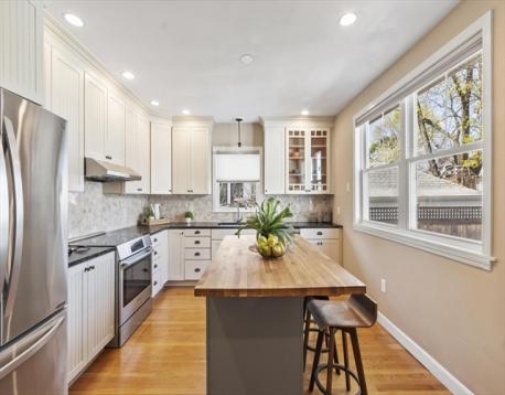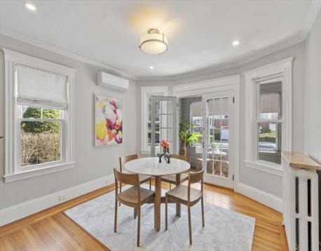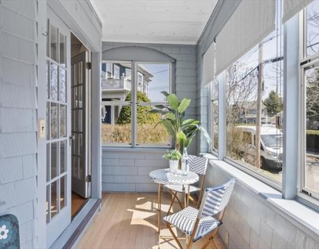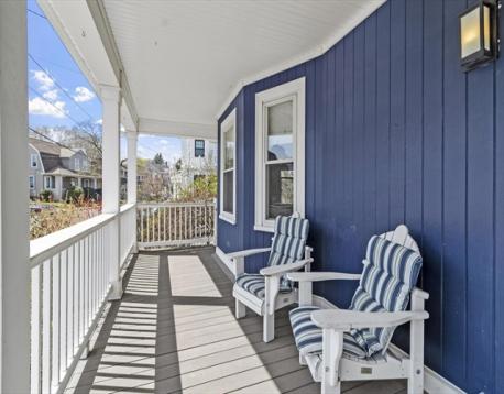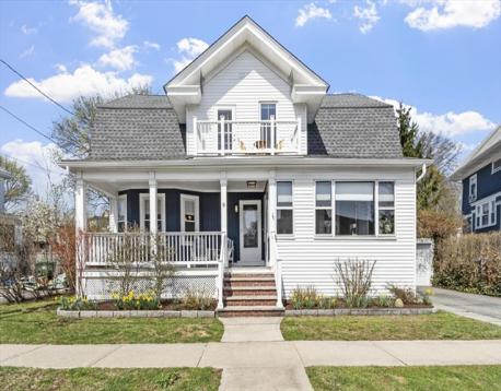 Start your mornings on the farmer's porch, or retreat to the three-season porch when weather turns. This meticulous 1905 Colonial blends timeless architectural character with modern comfort. Hardwood floors flow throughout, complemented by an original built-in hutch in the dining room, gas fireplace in the living room, and crown molding that honors the home's heritage. The updated kitchen brings contemporary functionality to classic bones. Three spacious bedrooms each offer distinct personality: the primary features a generous walk-in closet, the second opens to a private balcony, and the third includes an ensuite bathroom. Ample closet space and excellent basement storage keep everything organized. Just a quarter-mile from the commuter rail station, Boston is within reach. Nearby restaurants, shopping, and the Mystic Lakes (1.5 miles away) with river trails invite outdoor exploration. This home feels like a sanctuary—inviting, comfortable, and charming in a great connected location.