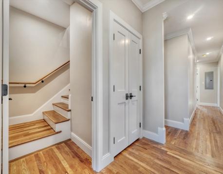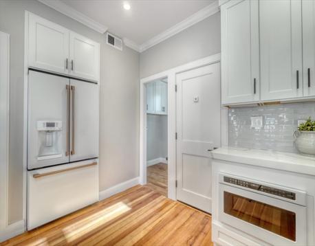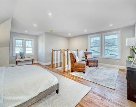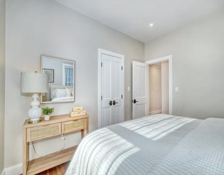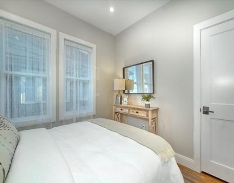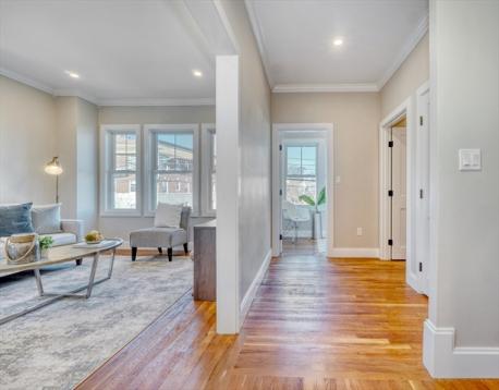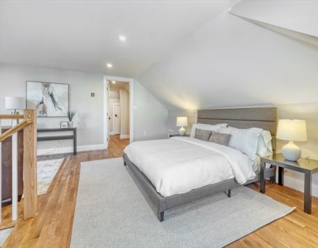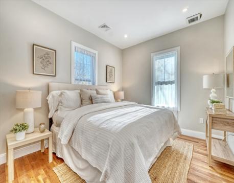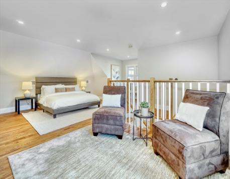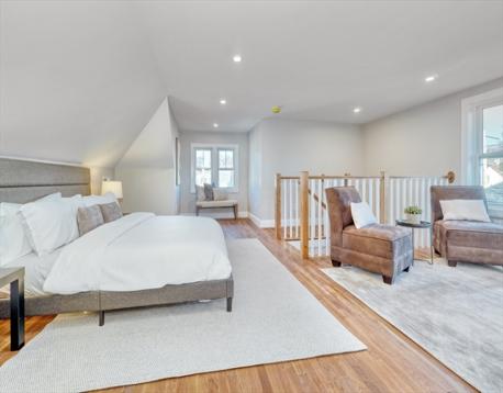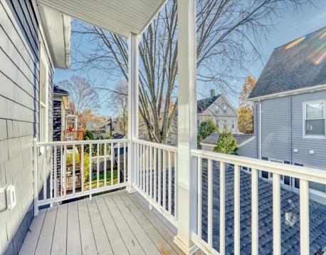 Luxury townhome in a premier Melrose location—steps to the commuter rail, close to Oak Grove Orange Line, downtown Melrose, hiking trails, and the waterfall. This beautifully renovated 2nd and 3rd floor unit offers open-concept living with 9 ft. ceilings and exceptional natural light. The stunning new kitchen features custom cabinetry, quartz countertops, and GE Café appliances, with an in-unit washer/dryer hookup. The main level includes two well-sized bedrooms with great closet space, a fully renovated bath with tiled tub, and a bright sunroom/home office overlooking Melrose. The top floor is a private primary suite with ample space for a king bed, sitting area, and a luxurious en-suite bath with walk-in shower. Additional improvements include all-new electrical and plumbing, brand-new heating and A/C, fresh interior and exterior paint, and a rear deck off the kitchen hallway. One garage space, two additional parking spaces. This townhouse checks all the boxes! Don't miss it.