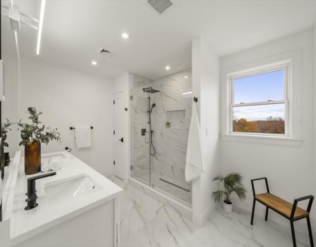 EXCEPTIONAL NEW CONSTRUCTION - 5BR - 4.5BA - COLONIAL. Styled in a modern palette, this house makes a statement in all the right ways. Gorgeous tree top view overlooking Melrose all the way to the Boston skyline! Welcome home to premium craftsmanship, high efficiency systems, and upgrades throughout. 400 AMP electric service. Wired for E-car charging inside your 3 bay - epoxy coat finished - garage. Ceiling mounted - indoor/outdoor - 14 speaker - 7 zone sound system. Custom built wet-bar w/ built in beverage center. Custom stair rails through 4 finished levels. RADIANT HEAT FLOORING in the primary BA. Dual walk-in closets for the primary suite. 2nd floor laundry w/ sink. Spacious eat-in kitchen. Double Anderson sliders. Huge covered deck complete with overhead lighting and speakers. 3rd floor living suite w/ full bath, bedroom, study and great room. HOME OFFICE. HOME GYM. This is a special location and rare opportunity. Schedule your private tour today.