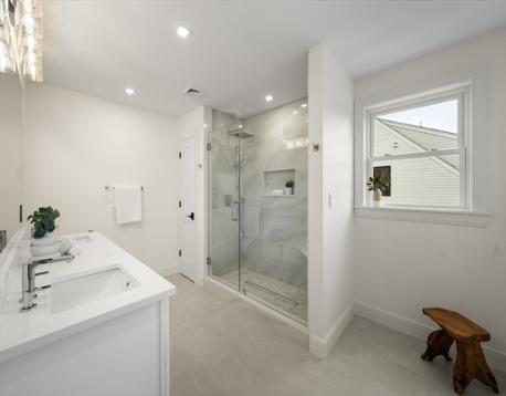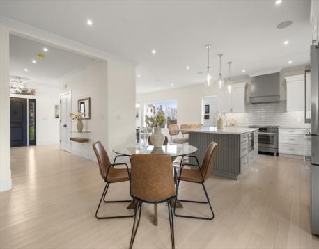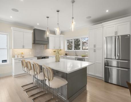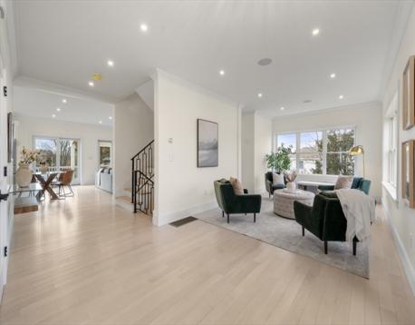 EXCEPTIONAL NEW CONSTRUCTION.This 5BR, 4.5BA Colonial pairs refined contemporary design with subtle zen influences in a prime Melrose location near Main St, Rte 1 & Orange Line access.Thoughtfully laid out with every square foot maximized.The showpiece kitchen features a 48” Bosch induction range, jumbo white quartz island, custom wet bar with beverage center, generous dining area and sliders to a covered deck.Oak floors, custom staircase with wrought-iron railings, 9’ ceilings, fireplaced living room, formal dining, den and powder room define the main level.The lower level offers an oversized 3-bay garage with epoxy floors, EV charging, mudroom with custom built-ins and a finished studio with private ¾ bath.Second floor includes 4 bedrooms, laundry and walk-in storage.Finished third floor boasts a stunning bath, bedroom, office area and giant bonus room with sweeping Boston views.Wired with a 14-speaker, 7-zone indoor/outdoor sound system. This is a special property and sure to WOW!