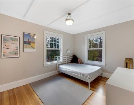 Beautiful architectural details highlight visual scale, balance, and function! Perfectly situated in a highly desirable Melrose neighborhood surrounded by similarly pampered homes! Enter through the covered porch / entertain on the purposeful patio / relax in the manicured private yard, framed by professionally pruned beech, cedar, and Japanese maple trees. South facing, with abundant natural light streaming into the living room at dawn and setting behind the kitchen / dining room into twilight. Blissful, relaxed vibes, great energy flow, & thoughtful details throughout—wood stoves & paneling to oversized bay windows, beamed ceilings, modern kitchen, & a brand-new powder bath. Upstairs, four expansive bedrooms, one w/out a closet transition to substantial attic space. Fully down-to-studs renovated, the modern full bath impresses. The cellar offers additional space for an office or playroom. Generous 2-car garage w/ extra room for bikes & outdoor gear w/ ample driveway parking. Walk > T