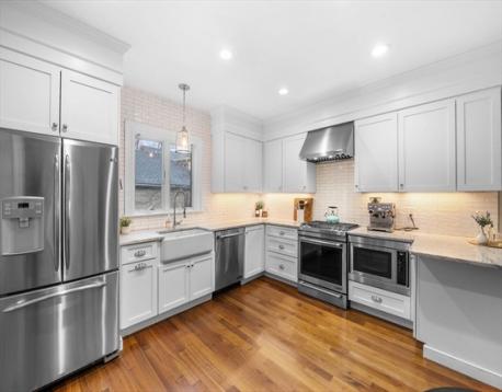 Dreaming of a Melrose Victorian with stained glass and an updated kitchen? Something you’d be proud to show off to your friends? Walkable to downtown and the Fells? A fenced-in yard for your dog? This home checks every Melrose box. Spend warm nights with a drink on your front porch, then step into a warm, inviting foyer that instantly feels like home. With high ceilings and original woodwork, the space feels effortlessly regal. No more yelling at your family to get out of the kitchen while you cook—there’s plenty of seating for them to admire your perfect chopping skills. A bathroom and mudroom complete the first floor. Three bedrooms and a large full bathroom complete the second floor, while the third floor offers expansion potential. Nothing to do but move in and watch your beautiful Japanese Maple bloom! Enjoy a level, fenced-in yard with a patio off the kitchen, a freshly painted interior, and tons of storage in the basement. All set in an adorable, commuter friendly neighborhood!