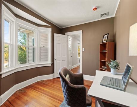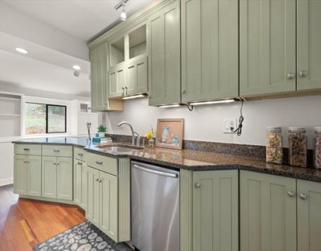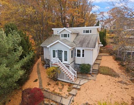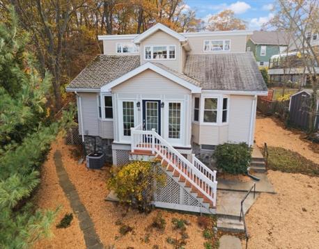 Charming cape, sited on lovely tiered lot, up away from street with mature plantings. Welcoming entry way leads to open floor plan featuring light and bright living room with French doors to relaxing deck. Inviting dining room with built-in hutch--great for entertaining--hardwood floors, newer windows. Updated kitchen with granite counters, upgraded appliances, open to comfortable family room with new flooring. First floor bedroom, office, full bath. Newly carpeted second floor--main bedroom with built-in sconces, additional bedroom, bath and generous storage. Full, partially-finished basement with laundry room Improvements and updates throughout. Serene private rear yard abutting conservation land. Storage Shed. Conveniently located to trails, parks, restaurants, and all that Melrose and surrounding towns have to offer. Short distance to highways, universities, hospitals, museums, entertainment, sporting events, and all that Boston has to offer. A truly special property