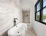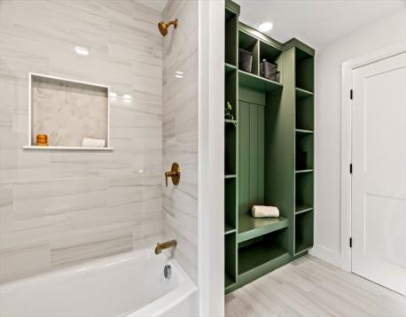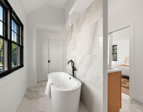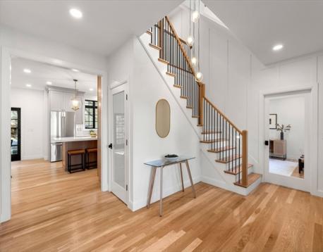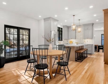 Introducing Melrose’s newest luxury new construction single-family home! This stunning modern colonial, set against striking glacial rock, offers over 4700 square feet of beautifully crafted living space — perfect for family living and entertaining alike. The main level welcomes you with a grand foyer, private office, and formal dining room, leading to an open-concept chef’s kitchen with walk-in pantry and premium Thermador appliances. The spacious great room features a fireplace and an illuminated tray ceiling, creating a warm and inviting atmosphere. Upstairs, the primary suite showcases a dramatic spa-like bath, accompanied by a junior suite, full laundry, full bath, and two additional bedrooms. The third floor offers a versatile entertainment area, full bath, and an additional bedroom. The fully finished lower level provides even more flexible living space with another full bath. Outside, enjoy a fully irrigated lawn, blending convenience with curb appeal!