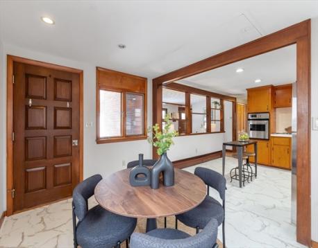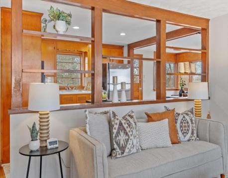 Original 1960s charm radiates throughout this preserved mid-century ranch. Step back in time with authentic vintage details in this ultra-convenient Cedar Park location. The open living space features hardwood floors, a cozy fireplace, and signature picture window flooding the room with natural light. A distinctive mid-century room divider creates stylish separation from the kitchen. The bathroom showcases stunning mint green square tile with classic black trim. Two bedrooms with hardwood floors offer comfort and character. Downstairs, a finished room creates the ideal home office space or media room, complemented by ample storage. Enjoy morning coffee on the deck overlooking your private wooded backdrop. Paved off-street parking accommodates multiple vehicles in this ideal location near the commuter line, farmers market, Bohemian coffee shop, Sweet Spot Bakery, and downtown Melrose. Gooch Park and the Fells provide endless outdoor recreation nearby.