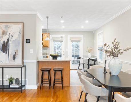 Quietly sophisticated and effortlessly livable, this Melrose townhouse offers an elevated approach to modern suburban living. Built in 2006 and spanning 2,040 square feet, the home features three bedrooms and two-and-a-half baths, complemented by a beautifully finished lower level with a gas fireplace, wet bar, beverage refrigerator, and ¾ bath—creating a distinct and versatile living area well suited for relaxed evenings, movie marathons, or hosting on game day. Light-filled living spaces flow with ease, while a private deck extends the home outdoors. Two dedicated parking spaces add everyday convenience. Set in a desirable neighborhood close to Melrose’s shops, dining, green spaces, and commuter routes, this residence delivers refined living with lasting appeal.