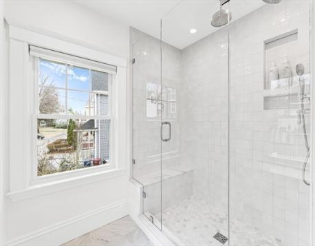 Stunning 5-bed, 2.5-bath renovated home in the coveted Bellevue neighborhood, set on a quiet, picturesque street. Fully renovated from 2022–2025, this reimagined residence blends timeless charm with high-end finishes throughout. The main level showcases a designer kitchen with custom cabinetry marble backsplash, premium appliances, and a walk-in pantry, seamlessly flowing into elegant living and dining spaces. A gas fireplace anchors the living room, adding warmth and character. An integrated sunroom and designer mudroom enhance everyday living, complemented by a main-level laundry room and ample storage. Upstairs features well-proportioned bedrooms and spa-like baths with custom built-ins. The versatile top-floor 5th bedroom is ideal for a playroom, guest suite, or office. Major upgrades include new plumbing, electrical, ductwork,HVAC, radiant heat, insulation, and Marvin windows. Private backyard with pool and lush landscaping, minutes to commuter rail, downtown, Whole Foods & shops!