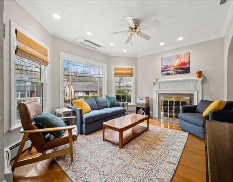 Timeless elegance meets modern comfort in this beautiful home, set in a top-rated school district, just minutes to the Melrose Highlands commuter rail, local restaurants & nearby playgrounds. Thoughtfully improved with new ductless heating & cooling, windows, waterproofed basement, dishwasher, hot water heater & upgraded insulation. Exterior enhancements include fenced yard, retaining wall, 8x10 shed, paver pathways with granite steps, raised garden beds & Trex front porch. Rich in character, features graceful archways, crown & carved woodwork, & period windows. A stately foyer opens to a living room with bay window, fireplace & detailed mantel, flowing into a formal dining room with medallion detail & French doors to a sunken vaulted family room. The vaulted kitchen is bright & inviting , ideal for everyday living & entertaining. Offers 5 bedrooms, office, updated bath & A 2006 addition adds exceptional comfort with mudroom and laundry, an upscale half bath & a charming porch
