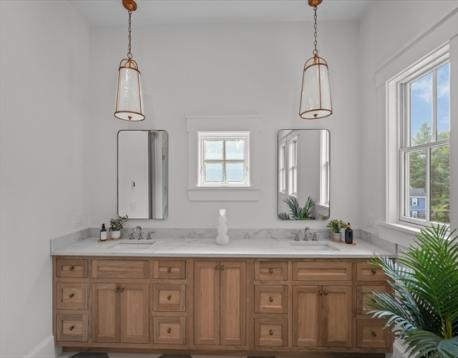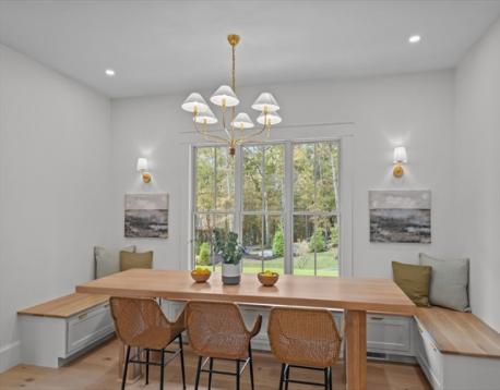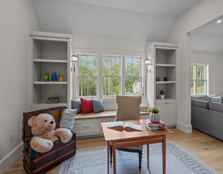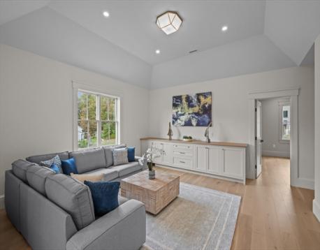 Experience luxury living at 1 Couture Way in Northeast River Estates, a custom-built home that perfectly blends timeless design with modern sophistication. The main level showcases a soaring great room with a fireplace, a gourmet kitchen with a full butler’s pantry, additional open shelving pantry, and a breakfast nook featuring a custom white oak table. A spacious mudroom with abundant storage adds both function and style to everyday living. Sliding doors open to a covered porch with ceiling fans, offering seamless indoor-outdoor living. The first-floor primary suite provides a spa-inspired bath with heated floors and an expansive walk-in closet. Upstairs offers open flex space, three additional bedrooms, and two full baths. The finished lower level features a media room, entertainment area with a full wet bar and wine storage, and walk-out access to a spacious private backyard. A true showcase of craftsmanship and modern comfort in one of Middleton’s newest developments.