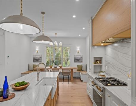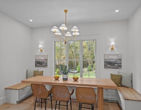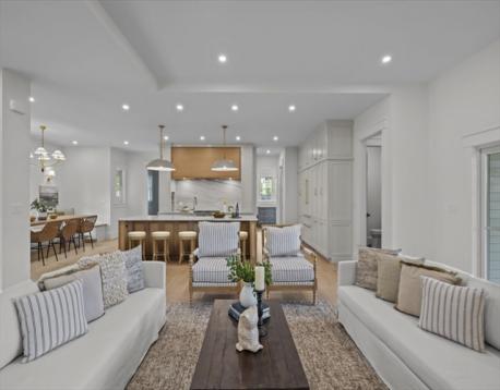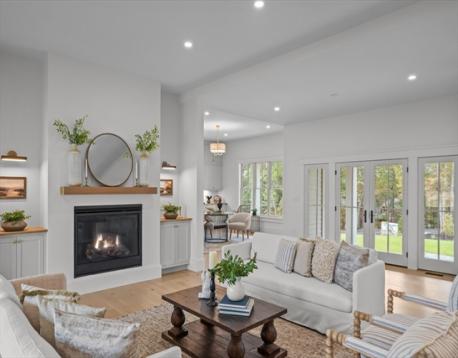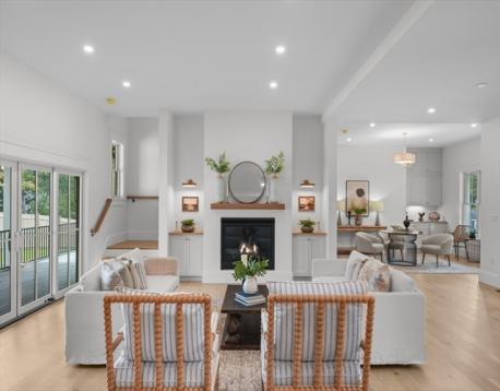 Experience luxury living at 1 Couture Way in Northeast River Estates, a custom-built home that perfectly blends timeless design with modern sophistication. The main level showcases a soaring great room with a fireplace, a gourmet kitchen with a full butler’s pantry, additional open shelving pantry, and a breakfast nook featuring a custom white oak table. A spacious mudroom with abundant storage adds both function and style to everyday living. Sliding doors open to a covered porch with ceiling fans, offering seamless indoor-outdoor living. The first-floor primary suite provides a spa-inspired bath with heated floors and an expansive walk-in closet. Upstairs offers open flex space, three additional bedrooms, and two full baths. The finished lower level features a media room, entertainment area with a full wet bar and wine storage, and walk-out access to a private backyard.