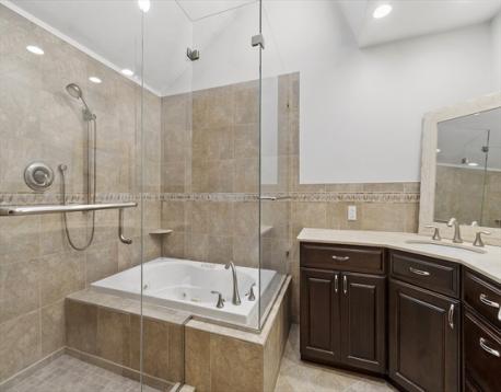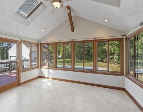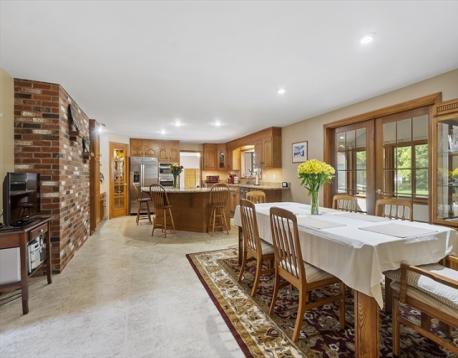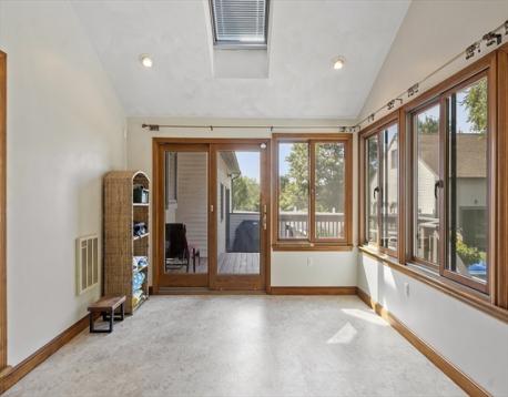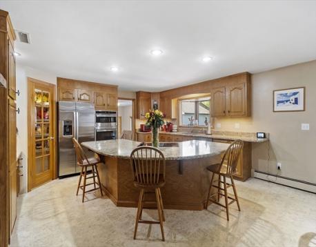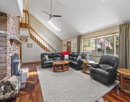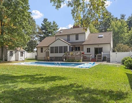 BUYER ALERT! CONTEMPORARY GEM WITH GORGEOUS YARD! This 3-4 bedroom home offers spacious airy rooms throughout starting w/ the living room boasting soaring vaulted ceilings w/skylights, HW floors & fireplace. The open concept kit. & din. area features a generous island, ample cabinets, pantry, granite counters & SS appliances. Off the dining area you will find an inviting sun room w/walls of windows that offers panoramic views of the lush private backyard. Mud room w/separate entrance w/laundry & storage cabinets. The first level hosts two bedrooms & full bath while the second level offers a expansive oversized primary bedroom w/FP & primary bath. Additional huge attic space for storage on this level. Additional bonus room on 2nd level offers a potential fourth bedroom. Finished LL game rm., 3/4 bth & office. Breathtaking fenced-in yard w/inground pool & deck. CA & two car gar. Spectacular detached 4 car garage w/finished attic for the car enthusiast or tradesperson.