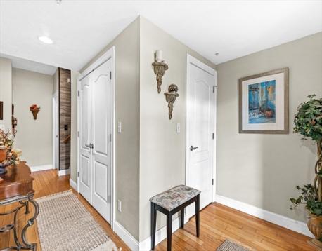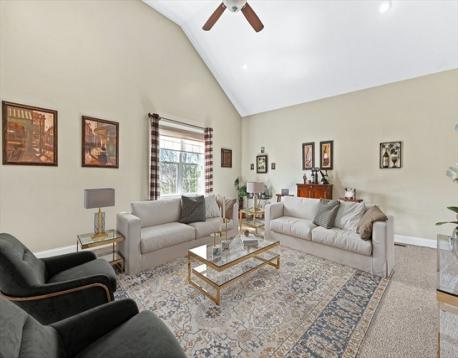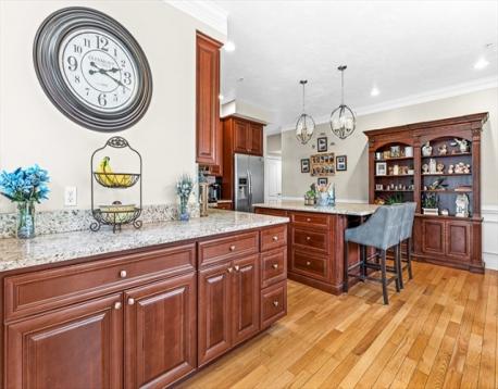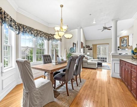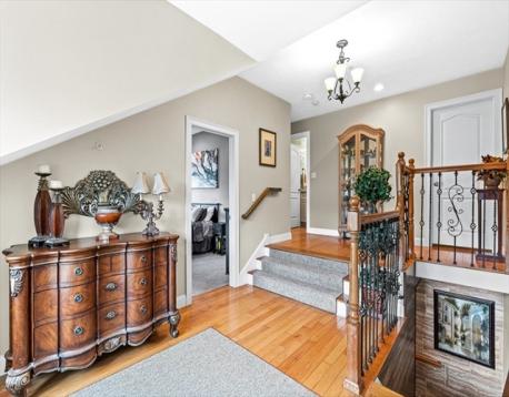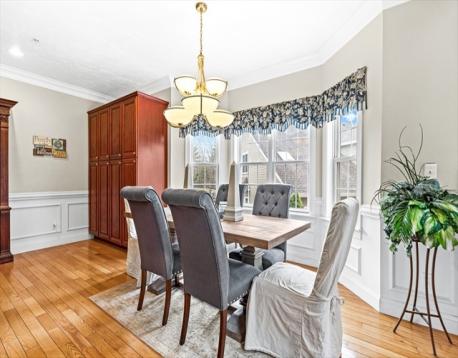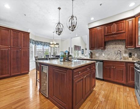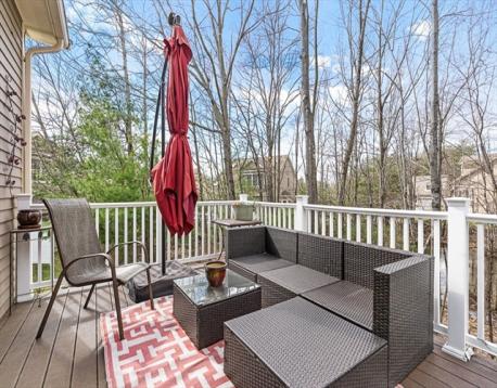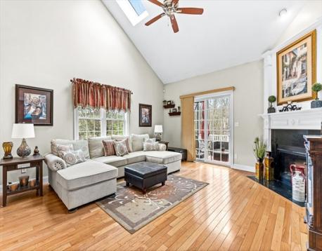 Much sought after 55+ community of North Meadow Village in Middleton. Offers you the flexibility of not one but two primary suites on either the 1st or 2nd floor, each complemented by a spa-like bathroom; this home delivers both comfort and versatility. The chef style kitchen is a standout, showcasing gleaming granite countertops and a granite backsplash, a stunning granite-topped island. Hardwood flooring flows seemlessy throughout the main area. Wainscoting and crown molding formalize the dining room area. Living room with vaulted ceilings, skylights and gas fireplace with sliders overlooking deck and wooded scenery. Open floor plan throughout main living area invites an entertaining environment with family and friends. 2nd level is thoughtfully designed with an open foyer, and sprawling bonus room. A full unfinished basement provides plenty of storage space or the possibility living space when finished. Throw in a 2-car garage and you have the complete package. Look no further.