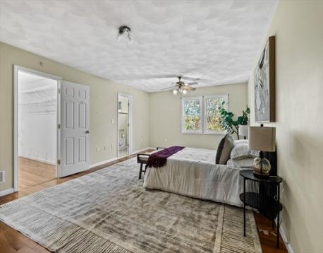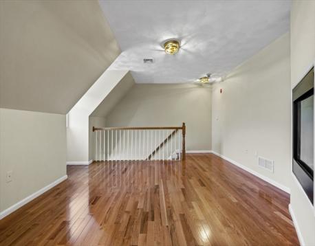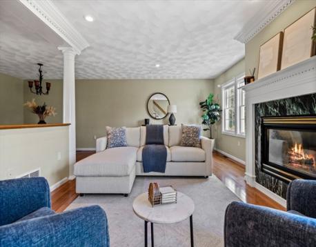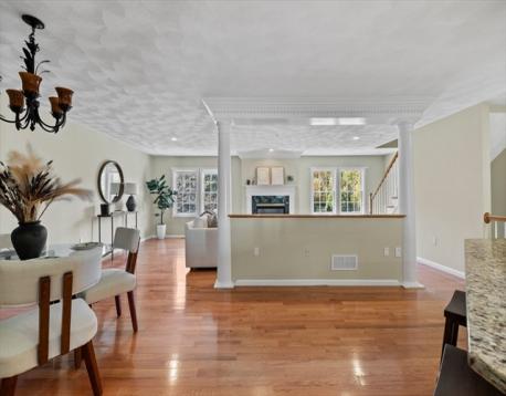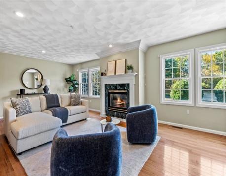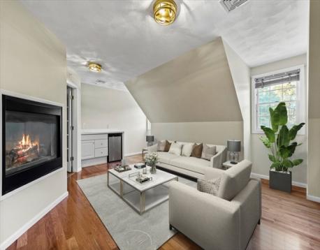 Here is your opportunity to own a townhome in the sought after Evergreen Estates. The tiled foyer leads to a versatile lower level with flex rooms, perfect for a home office, gym, playroom, or guest space. The main level boasts a lovely open floor plan with kitchen, dining & living area with fireplace, hardwood flooring & recessed lighting. The kitchen is an entertainer’s delight with breakfast bar, ample counter space, & cabinetry. This floor also has a bedroom & a full bath with laundry hook-up and a slider leading out to back deck overlooking conservation land, accessible from both the kitchen & bedroom. Upstairs is the primary suite retreat with a fireplace open to both the loft & bedroom. The loft with wet bar is suitable for an office, sitting room, or another room to entertain guests, & the oversized bedroom offers two oversized closets & full bath with jacuzzi tub, shower & double sinks. Just in time for the holiday season, this townhome is waiting for you, truly a MUST SEE!