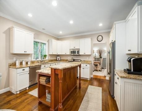 The home’s beautiful façade, professional landscaping, and grand arched entry make a memorable first impression in one of Middleton's most desirable neighborhoods. The main level boasts an inviting foyer with soaring ceilings. The welcoming kitchen features granite countertops, white cabinetry, and a warm wood island that adds both charm and functionality. Stainless steel appliances and hardwood floors complete the space. The kitchen opens to a comfortable, fireplaced family room, perfect for gathering with loved ones, and offers easy access to a large deck for outdoor dining and relaxation. Also included on the 1st level are a formal dining room off the kitchen, a living room & home office. Upstairs, you’ll find a primary with en suite bath, 3 more comfortable bedrooms and a spacious room over the garage that’s ideal for a home gym or flexible bonus space, along with a convenient laundry room. The finished lower level features a custom media room designed for movie nights.