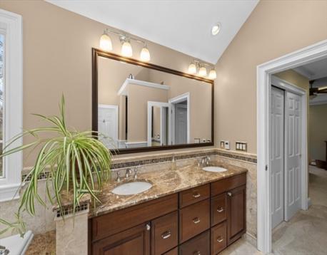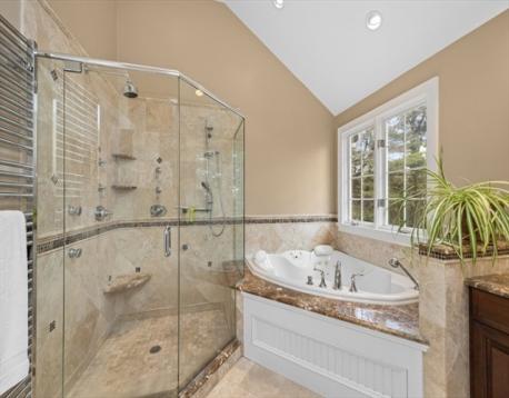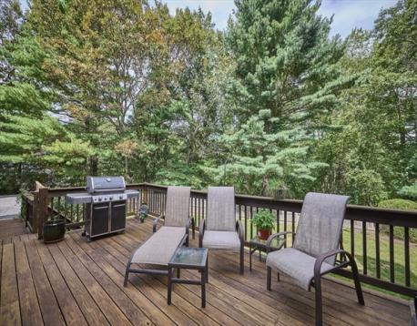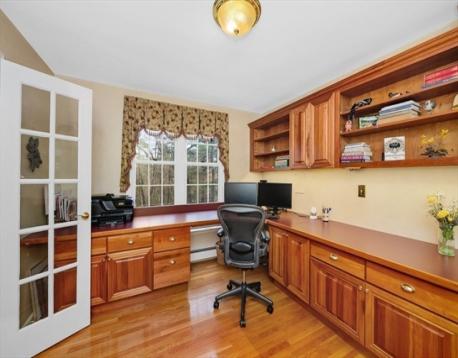 Welcome to 7 James Ave, in the sought-after Fieldstone Place neighborhood with easy access to Boston and major highways. This updated colonial w/ 2 story entry offers timeless design and modern amenities. The main level features a living and dining room, dedicated home office with custom built-ins, and a wood-burning fireplace family room that flows seamlessly into the kitchen with slider access to a spacious deck, mudroom, and three-car expanded garage. Upstairs, the renovated primary suite showcases ambient lighting, a spa-like bath with jacuzzi tub,radiant heat, and a walk-in closet and potential expansion space above the garage. Three additional generously sized bedrooms and a full bath complete the second floor. The lower level includes a custom wine cellar and partially finished walkout basement, offering endless possibilities. Enjoy a fenced-in yard, top-rated Masco schools, and close proximity to dining, shopping, and local amenities, close to Lynnfield and North Reading line.