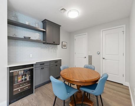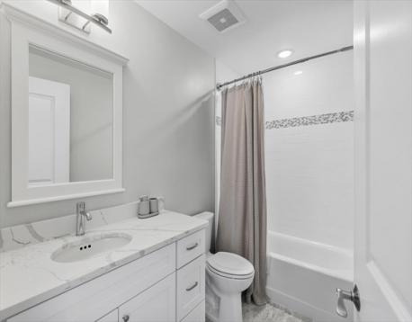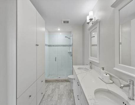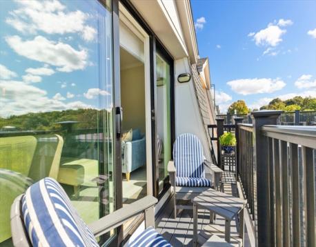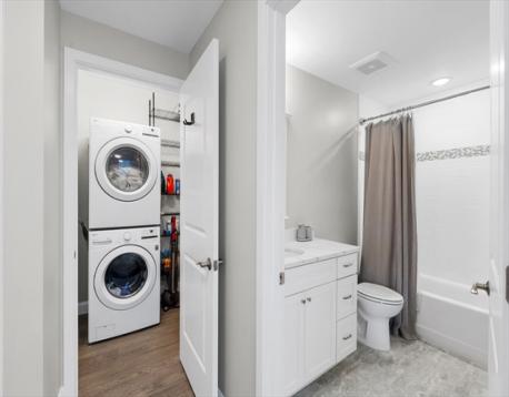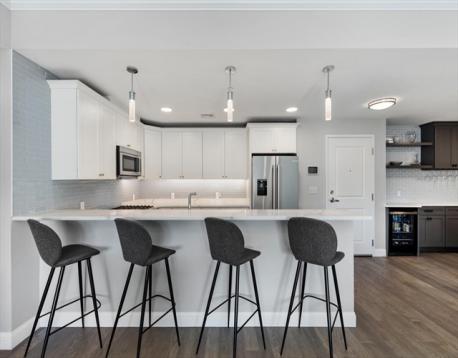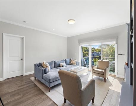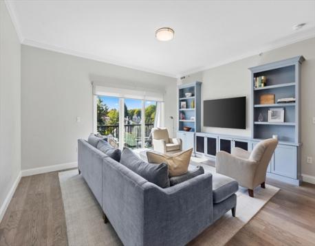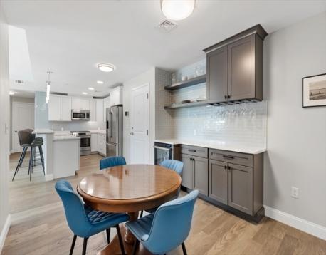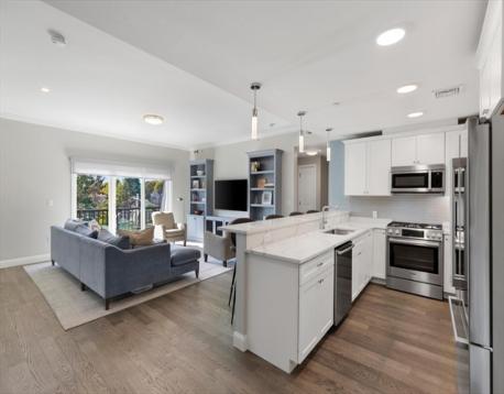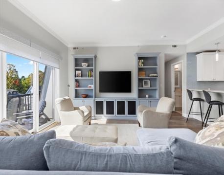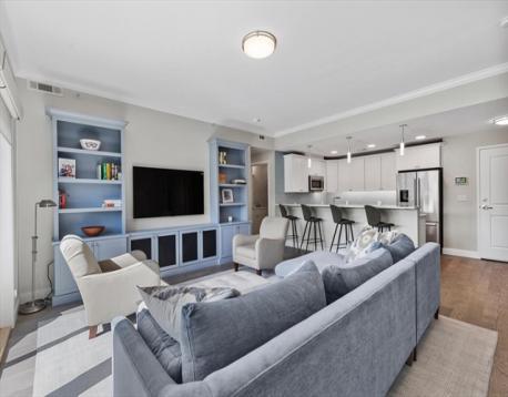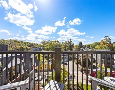 Hendries at Central Station is a newly built 38-unit condo in Milton’s historic Lower Mills. This top-floor center unit overlooks the courtyard and offers 1,355 sq. ft. of living space with 9-ft ceilings, 2 bedrooms, and 2 full baths. The kitchen features Bosch stainless steel appliances and quartz countertops. Enjoy a dining area with custom built-ins and a wine cooler, plus a spacious living room with custom cabinetry opening to a balcony. The primary suite includes a walk-in closet with custom shelving and a glass enclosed shower. The second bedroom has ample closet space. Includes stackable washer/dryer, 2 deeded parking spots, and 2 storage lockers. Steps from the Neponset River bike trail that offers miles of trails and close to public transit with easy access to Boston. Nearby dining includes Steele & Rye, The Bowery, and Lower Mills Tavern.