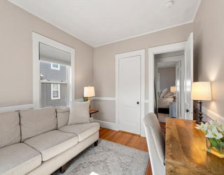 Spring welcomes you to this beautifully updated two-bedroom, one-bath condominium that perfectly balances timeless charm with modern comfort. Designed for effortless single-level living, the home features a renovated kitchen with stainless steel appliances, updated cabinetry, and sleek granite countertops, along with a generous pantry ideal for keeping everything neatly organized. Sunlight pours into the living room and bedrooms, highlighting high ceilings, classic moldings, chair rails, and rich hardwood floors throughout. Begin your mornings on the enclosed front porch with a cup of coffee, or unwind in the evening on the back deck during warm summer nights. Notable updates include a new roof (2020), updated windows, ductless mini-split air conditioning, Wi-Fi-enabled Nest heating, and off-street parking. Conveniently located just minutes from Blue Hills nature trails, restaurants, shopping, and major highway access, this lovely home offers both comfort and convenience.