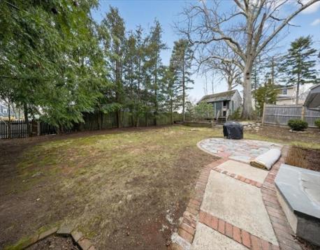 Expanded Mission-style ranch in desirable Pope's Pond neighborhood ! This uniquely designed home features hardwood floors, bay windows, and custom woodwork throughout. Bright fireplaced living room opens to an updated kitchen with custom cabinetry, quartz countertops, marble backsplash and stainless steel appliances, oven, stove, hood, microwave and refrigerator. Kitchen overlooks a mid level den with cathedral ceiling and stunning custom stone wall, with view of the private yard and stone patio-perfect for entertaining. Main level offers 3 bedrooms and a full bath. Finished lower level includes bonus room with brick accent wall, wood burning stove and full bath-ideal for home office, guest space or in-law potential. Recent updates include two new mini split A/C systems and upgraded 200 amp electrical. Private backyard with oversized garden shed ready for your finishing touches.