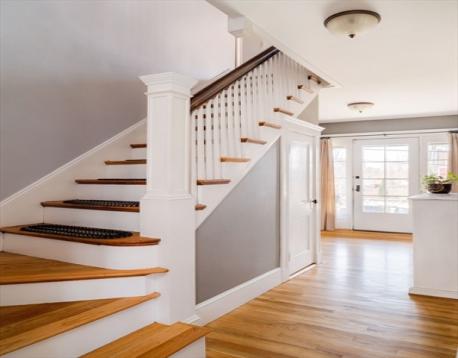 This beautifully maintained Bungalow-style 4 bed/1.5 bath home blends classic charm with modern updates across two spacious levels with hardwood floors throughout. The oversized porch and glass-paneled door welcomes you into an inviting foyer. The sun-filled first floor features a fireplace, recessed lighting and 8’ high ceilings. French doors open to a charming sunroom ideal for a home office. The dining room offers built- cabinetry, while the kitchen boasts stainless steel appliances, classic black-and-white tile floor and plenty of wood cabinets. Upstairs are four bedrooms, one of which is south facing and adorned with pocket doors and built in shelving. There's a walkout basement with laundry, updated systems, and storage. Enjoy a private yard and patio right off the kitchen. Ideal for outdoor entertaining! This home combines charm, functionality, and thoughtful updates in a desirable setting all within minutes to 93N/S, Route 3. This home is ready for its next owner to enjoy!