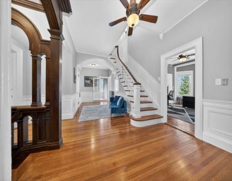 Step back in time with this stunning 12 room Victorian masterpiece-a perfect blend of timeless elegance and modern comfort. This turn-key home features three levels of living with 5 spacious bedrooms and 3 bathrooms, offering room for everyone. From the moment you enter, you'll be captivated by the incredible solid woodwork, ornate architectural details and period charm that define every space. High ceilings, intricate trim and large windows bathe the home in natural light, while modern updates-thoughtfully integrated throughout-ensure effortless living. Whether your're entertaining guests on the stately covered porch or enjoying quiet evenings by the fireplace, this Victorian gem delivers both grandeur and warmth in equal measure. With its meticulous preservation and complete updates, this home is truly a one-of-a-kind treasure ready for you to move right in and enjoy. See attached list of improvements which includes central air, solar panels, hardscaping and boiler.