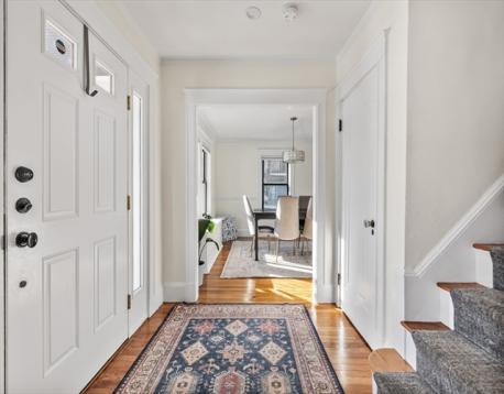 Nestled on .32-acre lot in prime Milton location, this stunning 4-bedroom Colonial perfectly blends classic New England charm with expansive living across 4 finished floors. True pride of ownership shines through extensive recent improvements. The main level features a bright and airy flow, seamlessly connecting a sleek modern kitchen to a formal dining room and a spacious family room, highlighted by an exquisite fireplace and wood mantel, that leads to the recently converted home office. The upper levels offer 4 well-appointed bedrooms and 3 updated full bathrooms, including a primary ensuite, plus a versatile 2nd floor bonus room. A finished basement with half bath provides the perfect flex space for a gym or play area. The oversized, fenced-in backyard with adjoining patio is a defining feature of the home, providing sprawling and tranquil privacy. Complete with a detached garage and steps to Glover, Pierce and Goddard Schools, Turner’s Pond and Kelly Park.