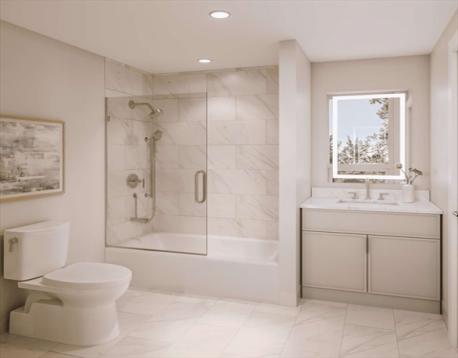 A bright, spacious two-bed residence with generous open-plan living, a den suited to focused work, and two well-separated bedrooms for extra privacy. The corner aspect brings in soft, consistent daylight, while the private balcony offers an easy connection to the outdoors. Walk-in closets, a laundry room, and ample built-in storage create a home that feels calm, organized, and ready for everyday living.