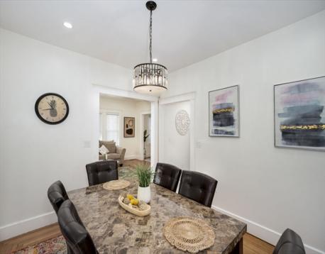 Own a piece of Milton history without sacrificing modern comfort! This Grand Colonial Revival, known as the Charles Wentworth House, was fully renovated in 2023, blending historic charm with modern luxury. A large front porch welcomes you into a move-in-ready home featuring high ceilings, original stained glass, and sun-filled rooms with new triple-pane windows for efficiency and quiet living. The modern kitchen offers white shaker cabinetry, quartz countertops, and a center island. The first floor includes a formal dining room, spacious living room, and a remodeled full bath with tiled shower. The second floor features four generously sized bedrooms and a remodeled full bath with tub. A finished walk-up attic offers flexible space for a fifth bedroom, home office, or family room. Major upgrades include all-new electrical and plumbing, gas forced hot-air heating, central A/C (2 units), and a Navien tankless hot water system. Corner lot with fenced yard, brick patio, and two-car garage.