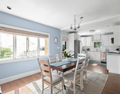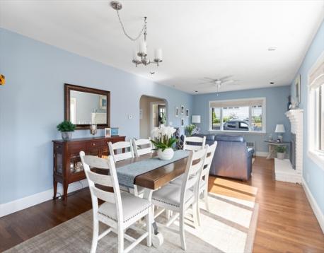 A coastal gem just steps to sandy beaches. Enter thru the foyer to an elegant sunny living rm w/nw gas fireplce, hrdwd flrs, recessed lighting & picture window. The open flr plan flows into a spacious dining rm & chef's kitchen that has white cabinetry, granite cntrs, subway tile & ss appliances. It is perfect for entertaining. Next, an oversized family rm that exudes coastal charm w/soft colored walls, art space, hardwd flrs, ceiling fn, a bonus seating area & roomy closets. Ocean views await in a seaside bedrm & a stylish tiled bath that complete the main flr. Upstairs highlights two bedrms w/water views, vaulted ceilings, hardwd flrs, ceiling fans, plantain shutters & hallway closets along w/a cozy sitting rm/office & modern bath. Great office/gym space in the finished basement w/garage access. Enjoy ocean sunsets while dining on an expansive trex deck w/cable rails. Two car tandem garage & extra prkng, extra storage, vynyl sided, nw hot water htr, nw paint & custom roman shades.