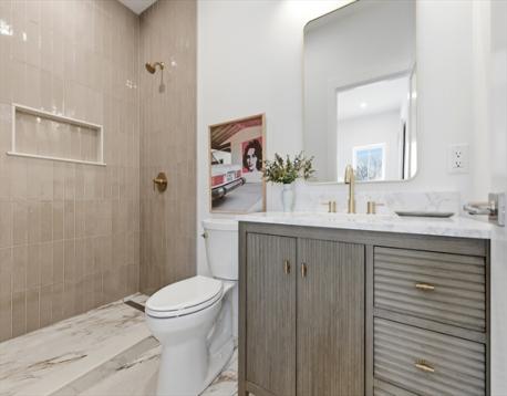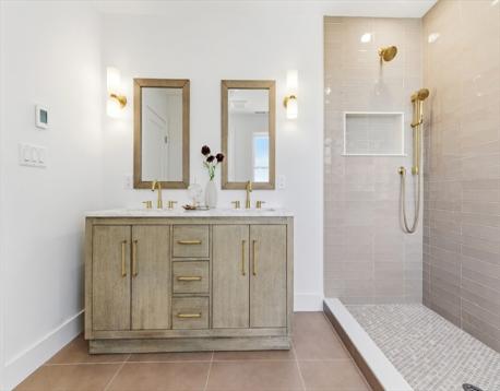 Welcome to 51 Fox Hill Rd, an exceptional opportunity in the desirable Big Nahant neighborhood, just moments from Short Beach. This newly rebuilt home offers 2,351 sq ft of thoughtfully designed living space with 4 bedrooms and 3.5 baths. The exterior showcases Hardie siding in Monterey taupe with white cedar accents and black composite windows, creating a timeless coastal aesthetic. Substantial salt-and-pepper granite stairs and landing provide a striking and welcoming entrance. Inside, the open-concept main level features rich mocha hardwood floors and a bright living room with sliding doors opening to a spacious deck, ideal for indoor-outdoor living. The kitchen offers quartz countertops and ample cabinetry. A versatile first-floor room with a full bath works well as a bedroom, guest suite, or office. The primary bedroom offers views of the Boston skyline. An oversized heated 2-car garage completes the home.