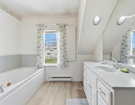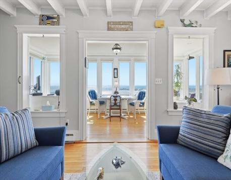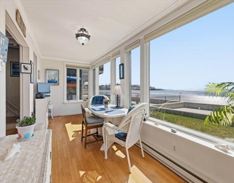 Inviting ocean breezes in this charming beach front retreat are welcoming you to the sea side community of Nahant! Private beach accessible from your back yard patio. Updated kitchen with granite counter tops, SS appliances, LVP flooring and a half bath. Living room with gas fire place, dining room with built in china cabinet. The first floor sunroom over looks the back yard and patio, surrounded in sea roses. Second level with three bedrooms and a huge full bath with jacuzzi tub and shower. Hardwood flooring throughout the two living levels. Updates: exterior remote controlled shutters 2023, kitchen 2021, electric panel 2023, floors refinished 2021, gas fireplace insert 2024, roof 2019, seawall and patio rebuilt, backyard completely fenced in, irrigation system and infinite ocean views! ~Showings to start at open house, Saturday and Sunday, April 18 & 19.