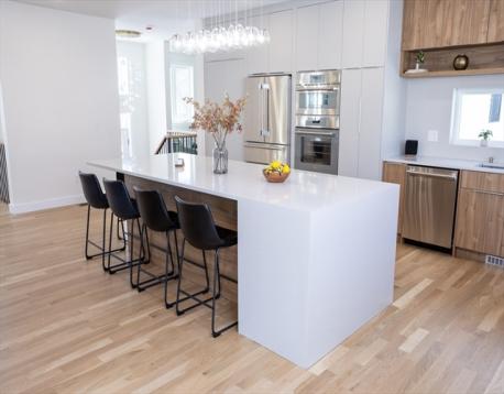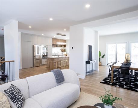 Welcome to 100 Woodbine Cir, a stunning modern home showcasing sophisticated architectural design. This house offers 5 bedrooms, 4 full bathrooms, 2 half baths, and over 5,000 square feet. The house features a bright, open-concept layout on the main level. Expansive windows fill the space with natural light, while sliding doors lead to an oversized patio and a beautiful backyard. The European-inspired kitchen showcases custom cabinetry, premium Thermador appliances, an impressive 8-foot quartz island, and a spacious hidden pantry. The main level also includes a dining area, two living spaces, half bath, and a guest suite with a full bathroom. Upstairs, you’ll find four bedrooms, including a luxurious primary suite featuring abundant natural light, a spa-like bathroom with a steam double shower, soaking tub, and dual walk-in closets. Designed with efficiency in mind, the home boasts an impressive HERS rating of 52. Additional highlights: 3-zone HVAC system, 400-amp electrical service