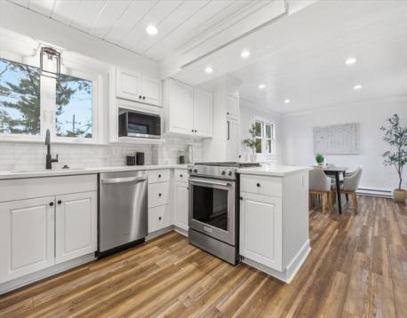 Welcome to 1034 Webster Street in Needham — a beautifully updated, move-in ready home in an unbeatable location just moments from Needham Center and the commuter rail.This charming 3-bedroom, 1.5-bath home offers the perfect blend of modern updates and everyday comfort. The bright and inviting interior features a spacious living room with a cozy wood-burning fireplace, a dedicated dining room, and a versatile home office—perfect for today’s flexible lifestyle.The thoughtfully renovated kitchen showcases quartz countertops, stainless steel appliances, and ample cabinetry, ideal for both daily living and entertaining. Recessed lighting throughout enhances the clean, contemporary feel of the home.Additional highlights include in-home laundry, 200-amp electrical service, a 2014 gas boiler, and a new hot water tank. A brand new roof adds even more value and peace of mind, making this truly a turn-key opportunity. Close proximity to shops, restaurants, parks, and easy commuter access!